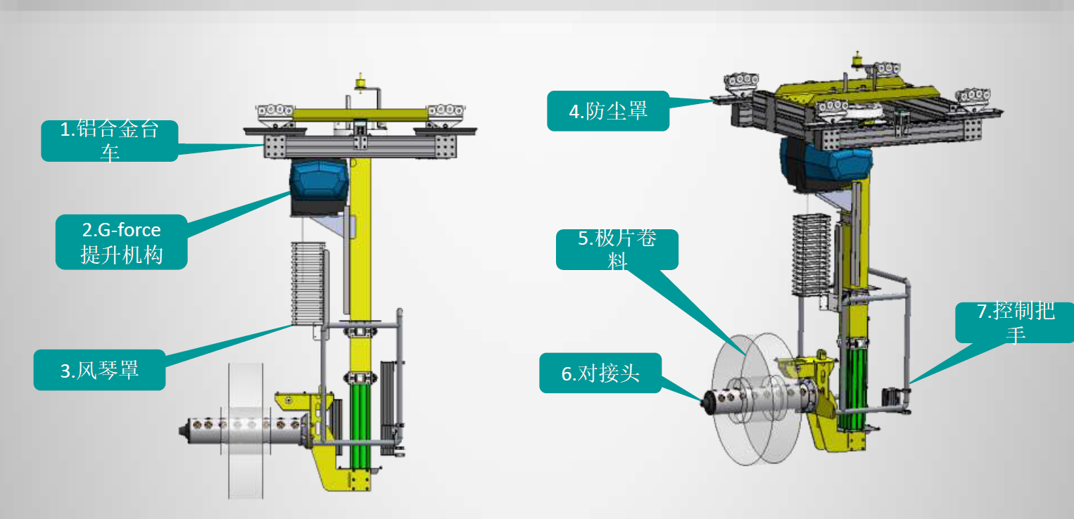 返回列表廣州卓鋒設(shè)計(jì)制作的電芯箔材卷料OHT,用于電池正負(fù)極卷料部件的搬運(yùn),卷料需要在加工設(shè)備-緩存架-周轉(zhuǎn)小車(傳統(tǒng)或AGV)之間進(jìn)行轉(zhuǎn)運(yùn)。加工工序主要有涂布、滾壓、分切、模切、卷繞等,每道工序都面臨卷料的上下料問題。 卷料重量一般在300kg以下,少數(shù)可達(dá)600kg以上